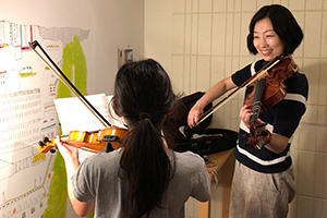 楽器の構え方、手首の動きや脱力、正しい音程練習などの基礎的なテクニックをヨーロッパのメソッドも用いてしっかり学びます。自ら音を作り上げる弦楽器ではこの基礎が何より大切です。オーケストラの第一コンサートマスターを務めていたヤン先生は上達のためのテクニックをたくさん持っています。小さな子供クラスは高雄敦子先生が担当します。現役のヴァイオリン奏者として活躍する高雄先生が、子供たちに優しく指導します。このクラスは4歳から受講でき、音楽の基礎であるソルフェージュを導入し、歌を歌いながら楽しく楽譜の読み方や音程をしっかり身につけます。
